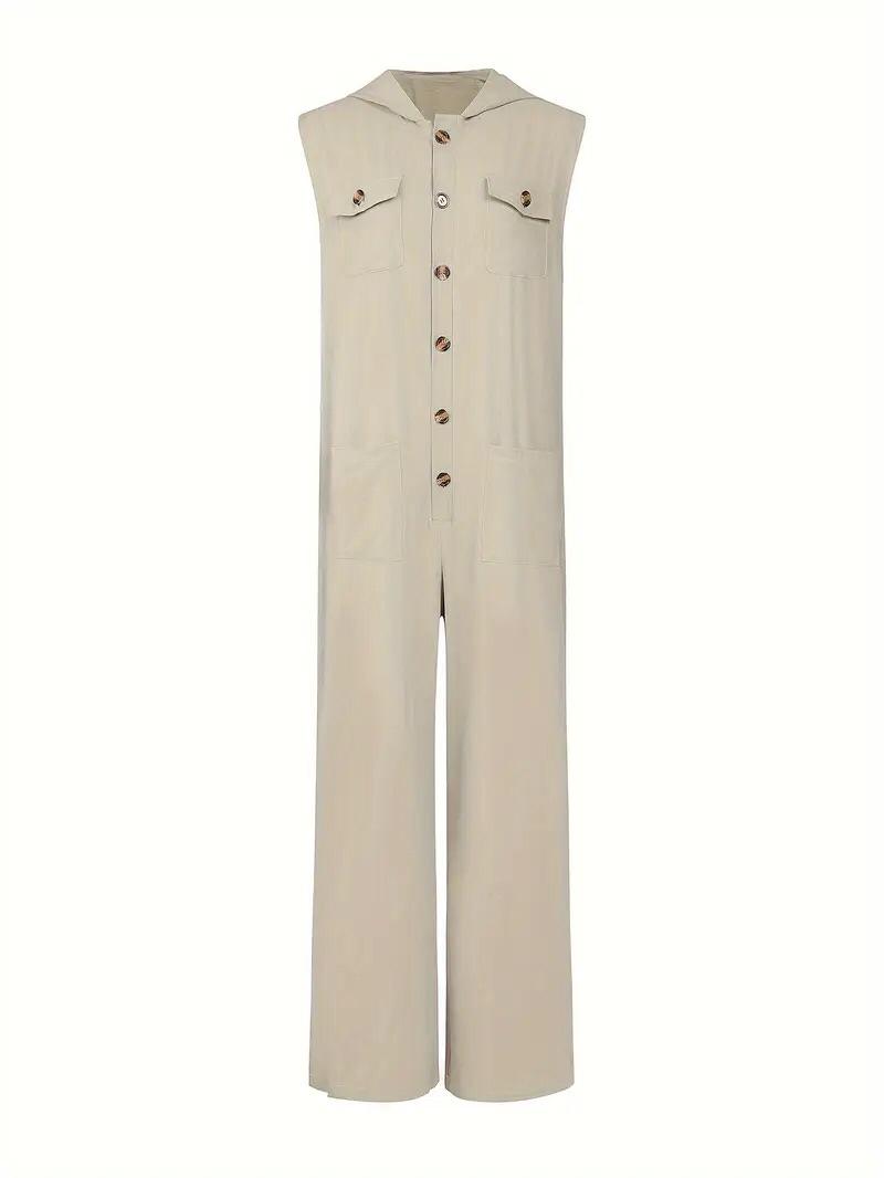 Upgrade your wardrobe with this Men’s Casual Hooded Cotton Sleeveless Jumpsuit, designed for effortless style and all-day comfort. Perfect for spring and autumn, this relaxed-fit jumpsuit features a lightweight cotton material that ensures breathability and ease of movement. The sleeveless design is complemented by a practical hood, full-button front closure, and functional pockets for added convenience. Whether you’re stepping out for a casual outing or lounging at home, this versatile jumpsuit makes a stylish statement.