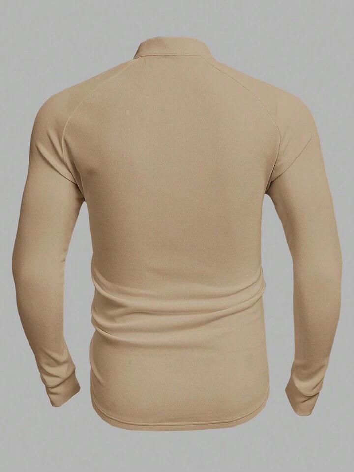Men’s Solid Color Bandage Stand Collar Long Sleeve Knitted Casual T-Shirt